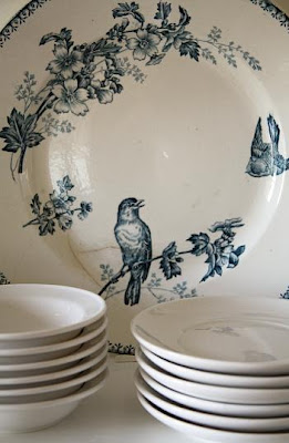 Today I put up my bird transfer ware. It's a significant day as it marks a vision I had during our long remodel. Amidst dust, storage boxes, and utter chaos, I dreamt that one day, one beautiful calm day, I would put these up as a marker of spring.